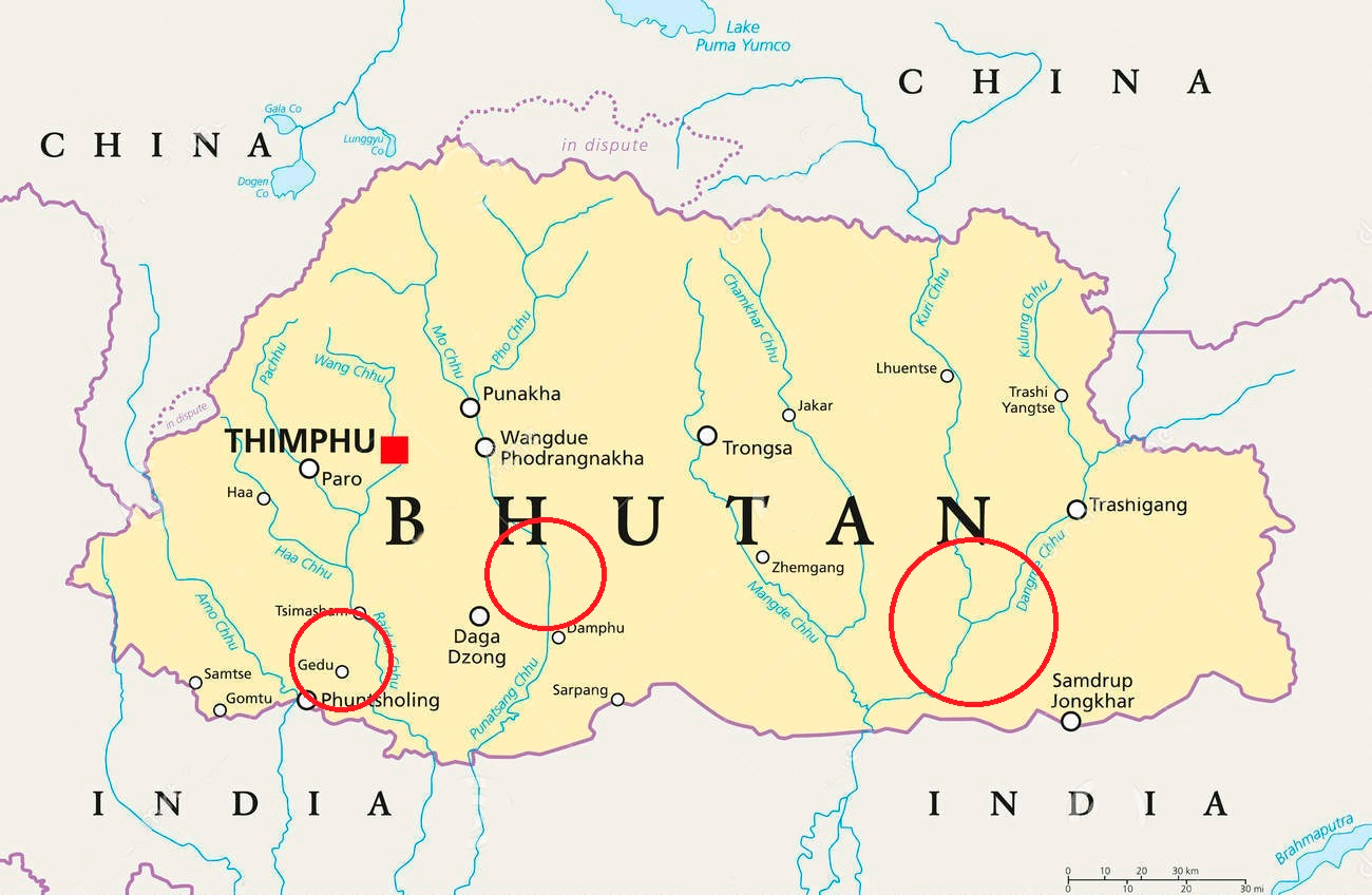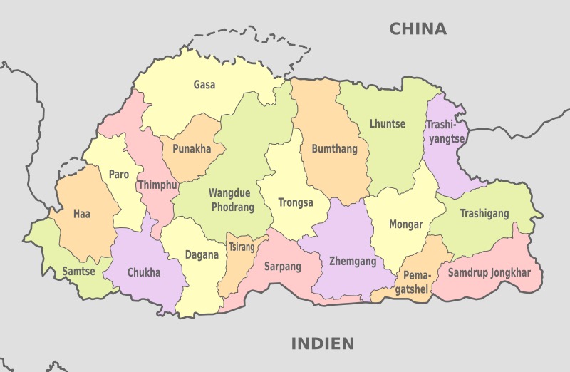 Bhutan ist ein Binnenstaat in Südasien und grenzt an Tibet, China und Indien. Mit nur 750.000 Einwohnern zählt es zu den kleinsten Ländern Asiens. Es ist etwa so groß wie die Schweiz. Bhutan gilt als das bergigste Land der Welt mit einem Anteil von 97 % der Landesfläche, der bergig ist. Der Norden gehört zum hohen Himalaya-Gebirge und hat über 7000 Meter hohe Gipfel. Über 80% des Landes liegen höher als 2000 Meter über dem Meeresspiegel. Aufgrund der große Höhenunterschiede gibt es in Bhutan viele unterschiedliche Klimazonen und Lebensräume, von subtropisch bis alpin. Der Zugang zu vielen Gebieten ist schwierig, manche Regionen sind nach wie vor nur zu Fuß erreichbar.